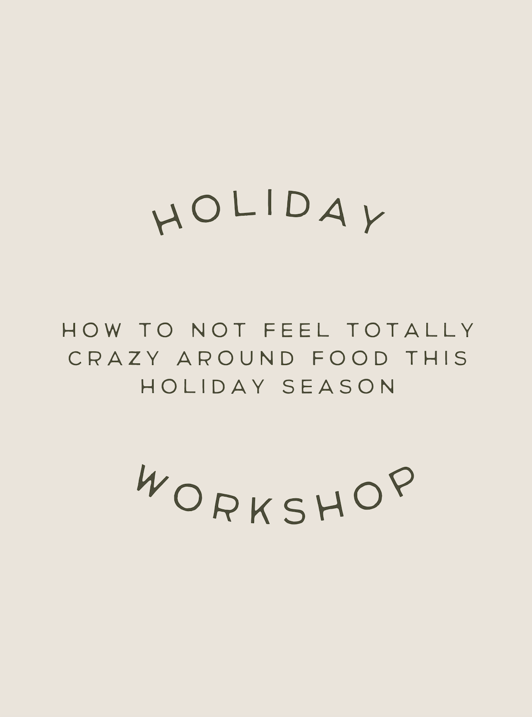 You will be given the tools you need to interrupt this cycle and help you not feel totally crazy around food this holiday season. Leaving you space to feel present with your friends and family and not filled with regret and shame come January 1st.